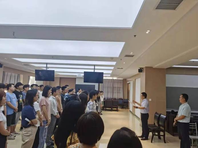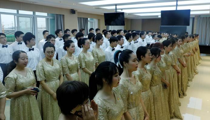 在选曲后,邀请专业老师为大家讲解歌词背后的故事。参与师生在训练过程中,排除万难,利用休息时间进行排练,学院也从各方面为训练师生做好后勤保障。在专业老师的悉心指导下,全体师生的配合下,大家的合唱水准和默契度不断提高,每次训练都朝气蓬勃、 昂扬向上。