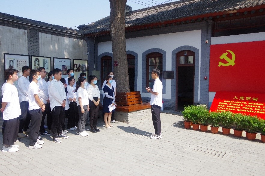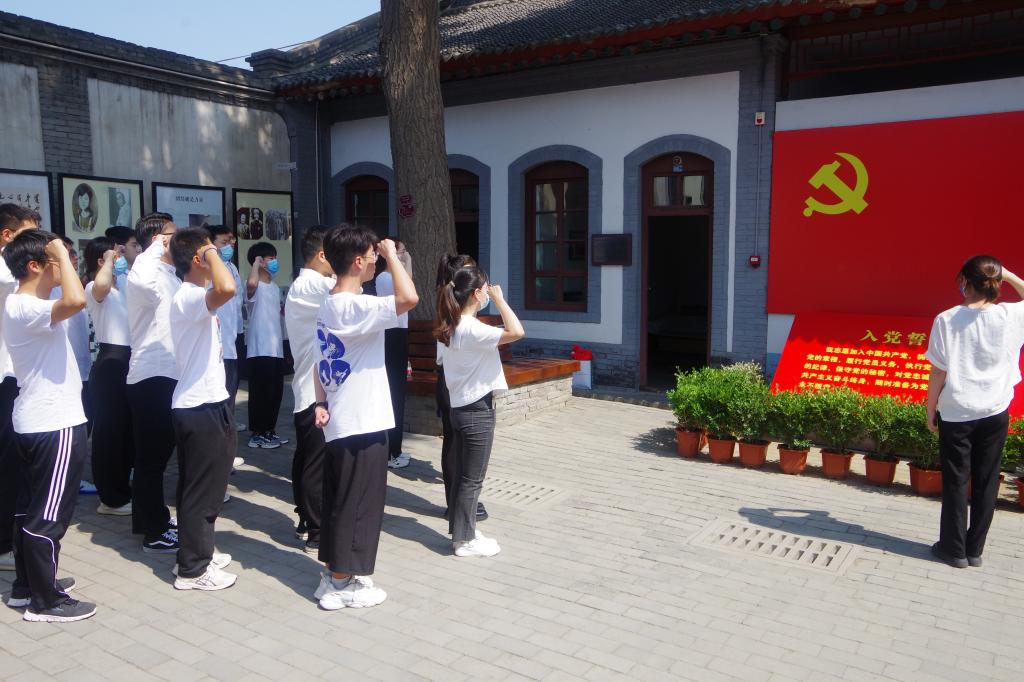 参观学习结束后,在一号院旧址全体党员面对鲜红的党旗,重温入党誓词。庄严的誓词洗涤着每一位党员的心灵,进一步增强了学生党员的责任感和使命感。