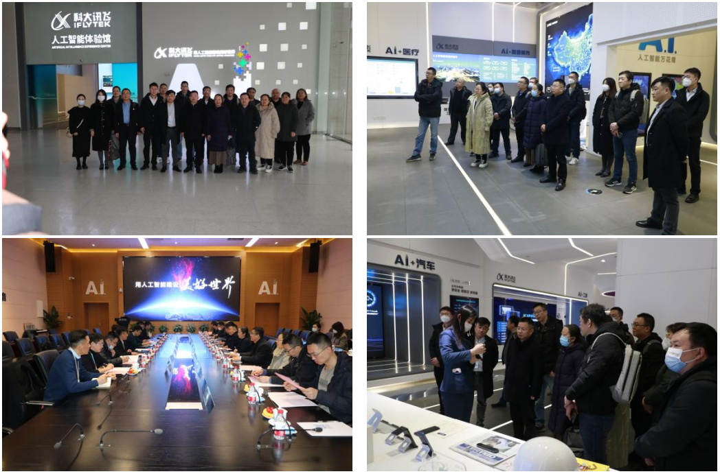 一行前往科大讯飞合肥总部进行参观调研,学院一行先后参观了科大讯飞人工智能多功能展厅、AI LAB基地,听取了科大讯飞的核心技术优势及产业发展情况,了解了科大讯飞人工智能在教育、医疗、城市等领域的应用成果。