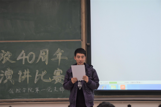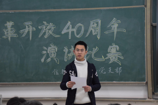 为纪念改革开放四十周年,引领学生感受改革开放伟大成就,12月6日晚8:00,黑料不打烊 第一党支部于学府城9栋414教室组织进行改革开放40周年演讲比赛,第一党支部成员龙永富、于瀚文、周一鑫、王凯参赛演讲,其余成员到场观赛。
