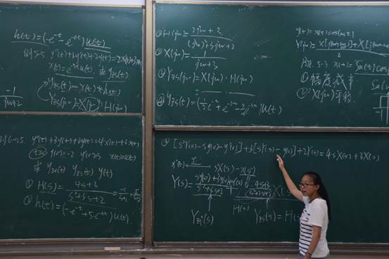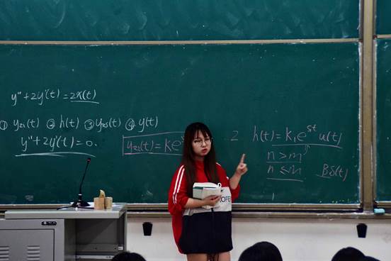 首先由周龙同学对信号与系统课程重要知识点进行总结梳理。接下来他通过课本中不同类型的例题为同学们剖析第一、二章重点,随后分析了连续与离散的区别,对课本中出现的小知识点进行例题讲解。然后由齐畅同学为大家讲解本书第三、四章的考点,她提醒同学们要学会有效复习,然后用一道经典例题全方面将第三章的重点难点一一攻克,随后她又通过课本中的定义和公式巩固同学们对考点的了解。紧接着的第四章,她带领同学们回顾学过的知识点,通过课后习题解释频率分析的定义,然后将本章所有重要公式展示在黑板上,用大量的例题为同学们巩固知识点。最后由葛思佳同学带领大家复习第五、六、七章。她对于每一个小知识点都会用用对应公式和例题进行复习,为同学们勾画出必背公式和定义,耐心地为同学们解决疑难点。三位讲课同学针对考试为同学们把信号与系统这门课程整体地复习了一遍,同学们认真听讲,响应积极。