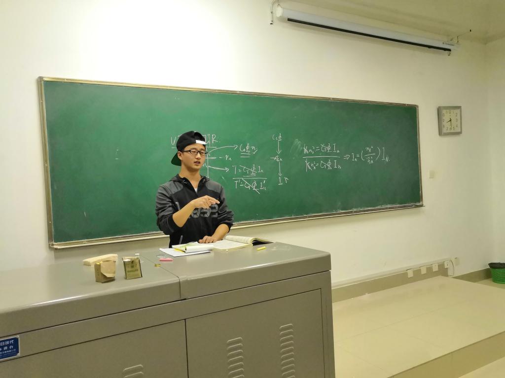 在将考试的重要知识点进行归类划分后,四位同学分章节分模块对重难点知识进行讲解。首先付蓉同学就"电磁绕组方式","励磁方式","电动机和发电机的区别及其电压平衡关系"四个方面对"功率平衡关系对直流电动机和发电机的工作原理及机械特性"知识点进行分析。同时她又针对章节内容复杂抽象、难以理解的现状与同学们分享了自身的学习方法,又结合相应图形来进行例题讲解,帮助同学们对解题方法有更深入的理解记忆。随后孙松婷同学将书本第二章与第七章内容进行讲解,着重分析了书中"如何判断电力拖动系统是否稳定工作"、"转矩以及飞轮矩的折算"以及"异步电动机的工作原理"三块内容,并点出了章节中的几个重要公式。紧接着石功林与陈帅超同学分别对"他励直流电动机的启动"、"调速和制动"与第五章的变压器内容进行讲说。石功林同学重点讲解了电动机的三种制动方法,将能耗、反接以及回馈制动的特性曲线与相应的电路图相结合,为同学们梳理了相关的知识点,并结合例题帮助同学们理清做题思路。陈帅超同学借助一字形和T形等效电路讲说了第五章的"变压器参数求解"与"变压器联结组标号"两个主要考试题型。在结合例题讲解的同时,他又给出相应的解题技巧,鼓励同学们做题要更加细致认真。