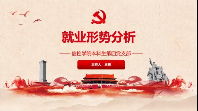 本科生第四党支部书记王栋同志对当前就业形势进行分析。2020年全国应届高校毕业生再创历史新高,达到874万人,同时,春季招聘的黄金时节受到疫情冲击,应届毕业生正面临着较为严峻的就业形势。对此,一系列就业政策正陆续出台、落地,更好地服务于大学生求职,搭建毕业生就业平台,助力毕业生“云就业”。
