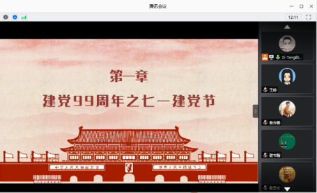研究生第一党支部杜瑶杜瑶同志带领大家进行了党史知识的学习,对建党节的由来进行了简单的介绍,回忆中国共产党由一大以来,经历的所有困难与磨难,但仍坚持不懈,不忘初心,将“为中国人民谋幸福,为中华民族谋复兴”作为我党的初心与使命。这个初心和使命是激励中国共产党人不断前进的根本动力,今年疫情在全球爆发,中国是唯一一个可以在最短时间将疫情控制住的国家,战疫情不放过任何一个死角,不落下任何一位公民,全体党员充分发挥带头作用,把初心落在行动上,把使命担在肩膀上,集中全国力量取得了当下令人满意的成绩。