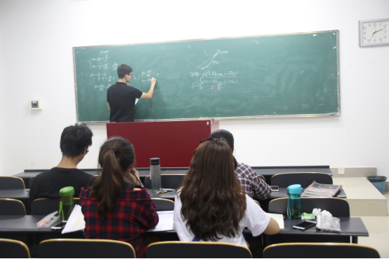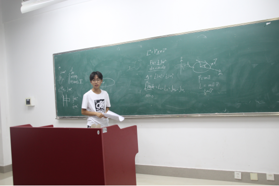 首先,张旭同学对质点运动学的基础知识点进行复习,讲解了质点的位置矢量和速度、加速度及位移之间的关系,并结合例题和同学们一起推导一些重要公式,同学们在听讲时都十分认真。紧接着由舒毅同学讲解关于刚体的知识。他通过例题总结做题方法及重难点,主要讲解了动量和角动量的关系及角动量的变化等。讲解过程中同学们积极提出疑问并认真听讲记录了相应解法,讲解同学细心耐心,课堂进展十分顺利。