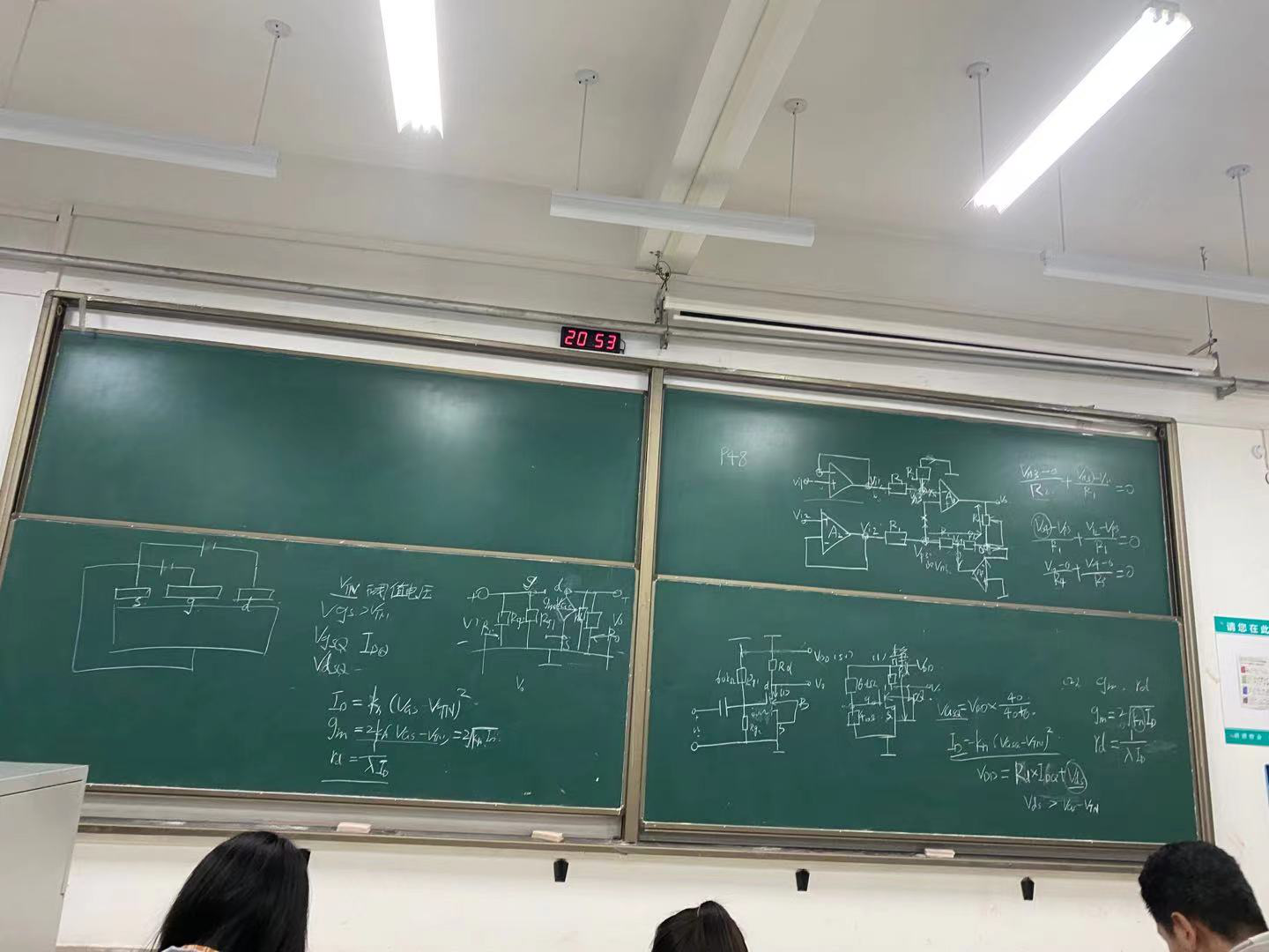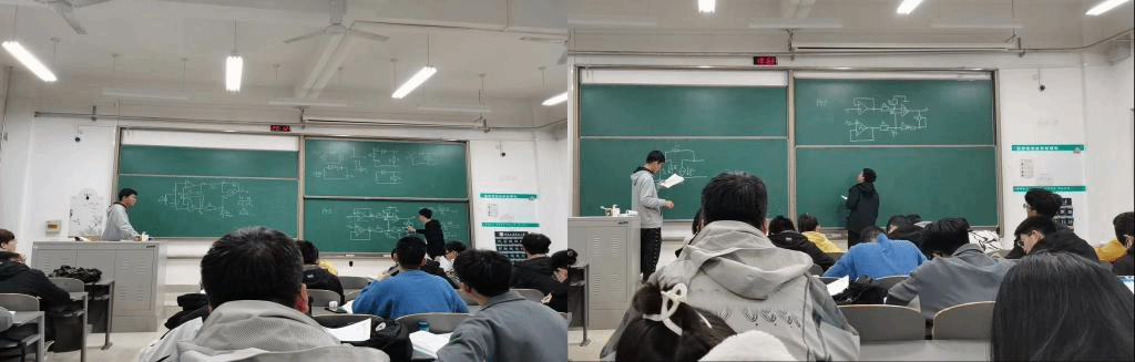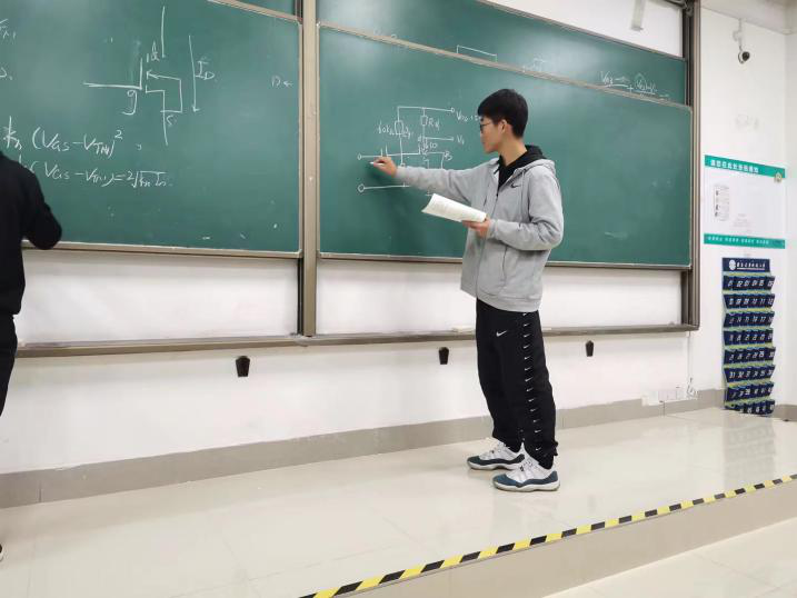 课程开始,殷豪杰带领同学们回顾了模电的前三章内容,并对前三章内容的公式等进行整理和讲解。为加强同学们对知识点的巩固,他借用典型例题进行讲解,加深同学们对知识点的理解。