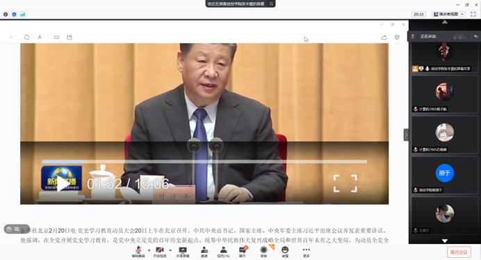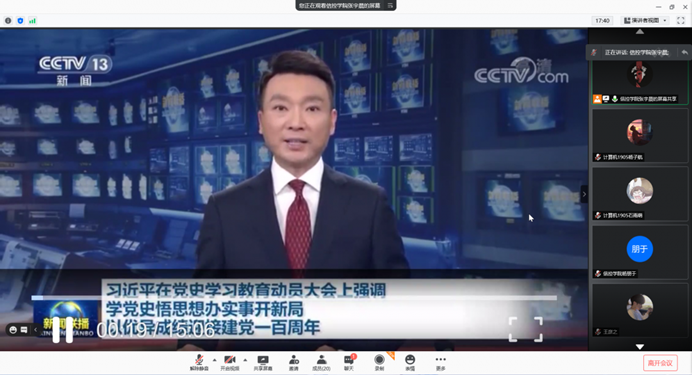 学生会主要学生干部通过线上会议集中观看“党史学习教育动员大会”,并就习近平总书记讲话内容进行交流分享。