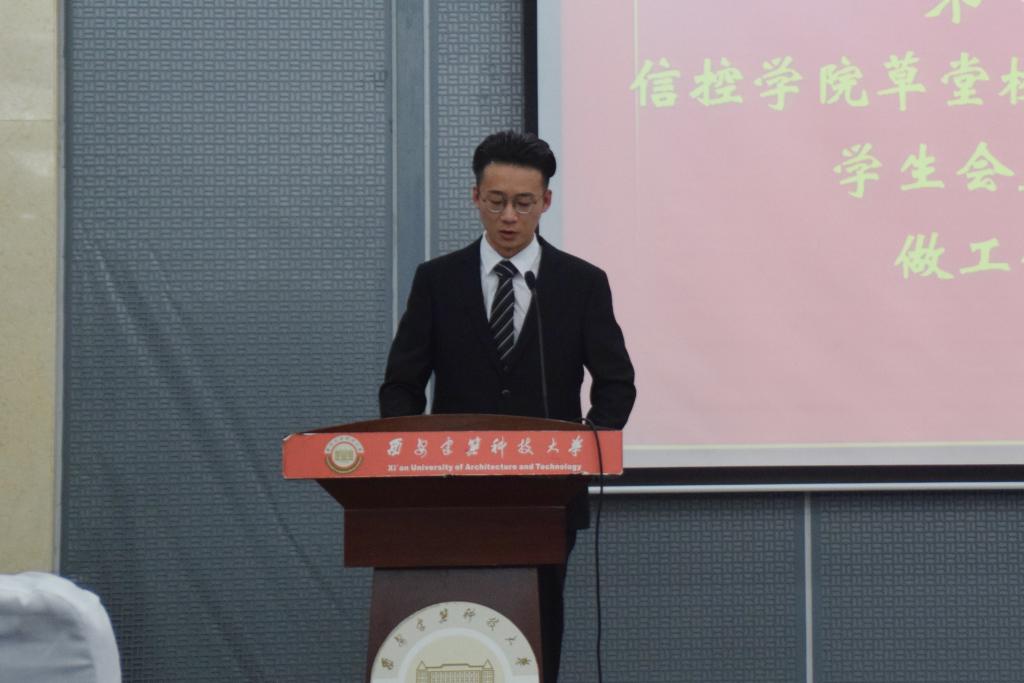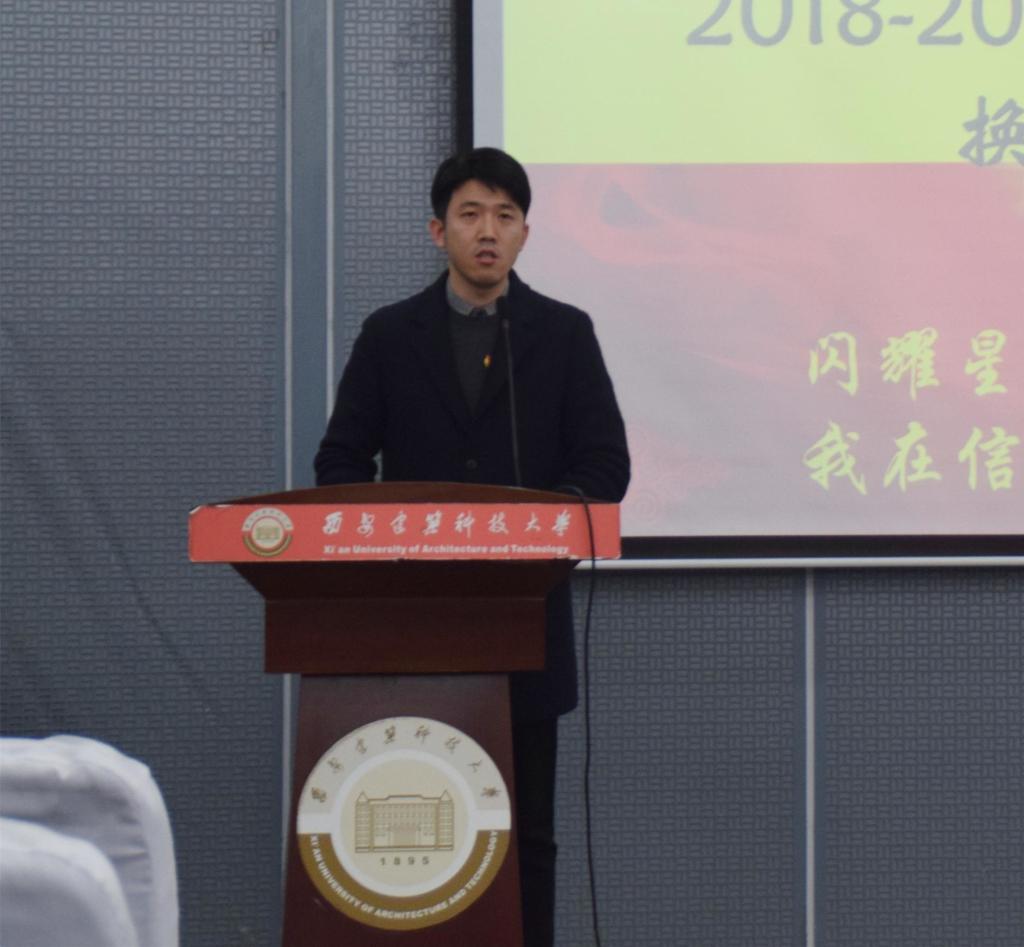 团歌声毕,大会正式开始。首先由2017-2018届团总支秘书长王志富、研究生会主席史其琦、学生会主席乔臻依次上台发言,对2017-2018年的团学工作做出总结。他们对过去一年中组织建设、制度完善、活动创新分别进行介绍,对给予帮助的老师与同学表示感谢,并希望新一届的成员能抓住机遇,继往开来,开创黑料不打烊 团学组织建设新境界。