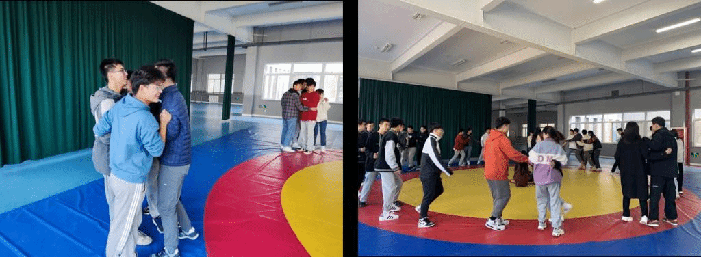 在团队竞技环节,为争夺第一名的称号,各队成员进行了“两人三足升级版”、“接力运球”、“九宫格丢沙包”和“狭路相逢”等游戏的比拼。现场竞争激烈,各位成员参与的热情高涨,纷纷发挥个人的智慧和勇气,为队伍贡献力量,帮助自己的小组争胜。