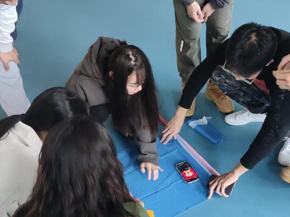暖场环节的“三人抱成团”游戏,让每位成员在手拉手、组队成团的过程中迅速熟悉,轻松的游戏氛围使在场的同学们越发活跃,大家都以最昂扬的心态投入到后续的活动之中。