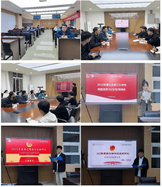 团委在信控楼606召开了2022年度团支部工作考核暨团支部书记述职评议答辩大会,学院团委书记张颉,团委副书记杨晓寒,2022级辅导员张凡,2020级辅导员王凯,院团委各部门负责人以及各团支委成员代表参加答辩大会。