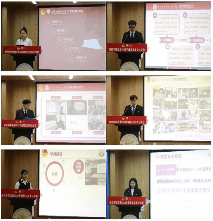 前期,学院团委组织各年级开展团支部书记述职评议工作,各团支部通过书面述职和现场述职相结合的方式,围绕学校、学院团委2022年度重点工作和团支部年度工作目标,紧扣学习宣传贯彻党的二十大精神,聚焦引领凝聚青年、组织动员青年、联系服务青年的职责使命,在强化团组织政治功能、激发团组织活力、打造共青团特色品牌等方面的履职情况,总结了过去一年的成绩,分析了存在的问题、提出了改进措施。