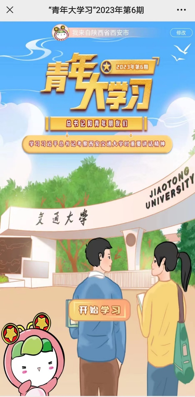 在本期的团课中,将与大家共同学习“习近平总书记考察西安交通大学时重要讲话精神”,跟着团团一起学习新思想,争做新青年,进入学习吧。
