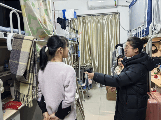 宿舍、实验室走访过程中,辅导员们逐一询问了同学们的返乡时间和假期安排,叮嘱大家注意出行安全,沿途做好个人防护,时刻谨防电信诈骗,合理规划假期生活;辅导员们还重点强调了安全问题,提醒同学们注意宿舍、实验室用电安全,最后离校的同学仔细检查,关闭所有电源,排除安全隐患。对于检查中发现的问题,辅导员们耐心指导,提出改进建议,并为同学们解答相关疑问。