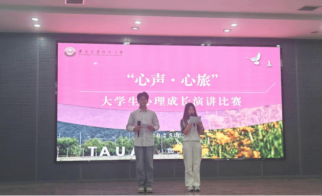 “信”语心坊联合院学生会、院研究生会于学府城2-304开展“心声・心旅” 大学生心理演讲比赛。校心理拓展与素质中心修风翊、各学院心理专干老师和来自7个学院的参赛选手及亲友团参加此次演讲比赛。