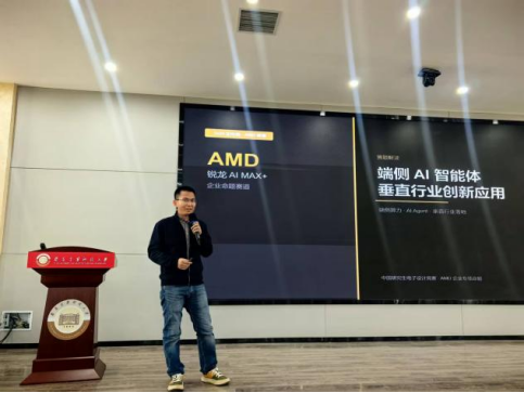 AMD Client平台验证部总监颜士相、工程师陈力分别介绍了AMD在端侧AI、处理器与算力平台的前沿技术与生态布局,重点解读企业命题方向,并介绍了企业人才储备计划与校招绿色通道,为同学们开展AI与电子系统融合创新提供技术支撑与就业通路。