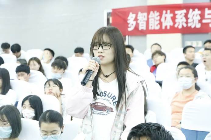 最后,在场师生和徐杨教授交流报告中的问题,徐杨教授从多方面多角度切入为同学们答疑解惑。他提出要以人为本,并建议作为工科的研究生在学术研究过程中应秉承着“需求牵引,实践落地”的原则,要真真实实的看到智能化技术到底给我们在生活上带来了什么,再去想如何设计以及研发,同时也指出要实现通用人工智能,多智能体系统是必须突破的研究方向,未来发展可能的方向有多智能体间的协商、交互机制、集成等。