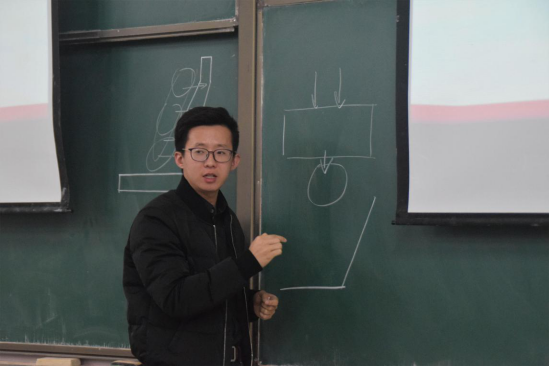 宣讲会开始,张雨明借“如何制造舒适座椅”这一问题引导同学们进入主题。随后,他向大家介绍了“数学建模”及“互联网+”的准确含义,并联系自己的毕业设计为大家讲解了继电器、单片机等相关知识。他鼓励同学们积极组队参加各类竞赛与创新创业实践活动,提高竞赛知识,提升创新意识,增强团队协作能力,并建议同学们对汇编语言做深入学习。