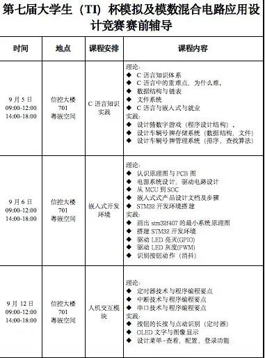 科技创新协会携手粤嵌科技共同组织的一次专业性极强的培训。学院对于本次竞赛高度重视,投入了大量资源和力量聘请实力过硬且有多次指导电赛经验的培训老师做这次指导会,以下是电赛赛前辅导的具体安排,请有意参加电赛的同学们合理安排时间,准时参加培训,提高自己的专业水平,力求在比赛中获得优异的成绩