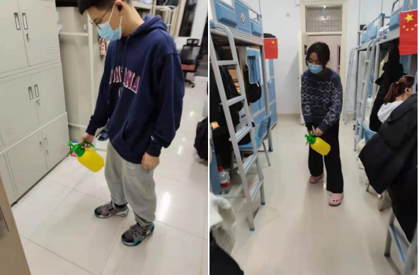 他们认真贯彻宿舍消杀工作