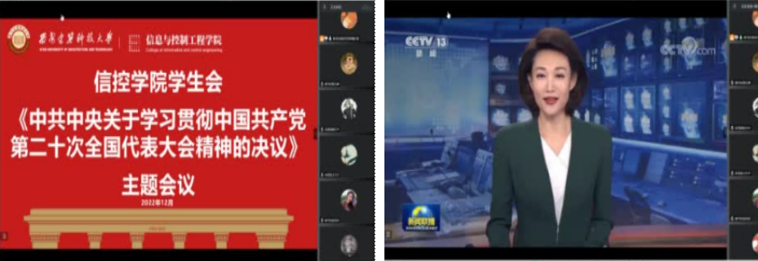 学生会在腾讯会议召开“《中共中央关于学习贯彻中国共产党第二十次全国代表大会精神的决议》学习分享活动”。会议旨在深入理解习近平新时代中国特色社会主义思想的形成背景和科学内涵,学习贯彻落实党的二十大精神,使信控学子更加紧密地团结在以习近平同志为核心的党中央周围。高举中国特色社会主义伟大旗帜,坚定道路自信、理论自信、制度自信、文化自信,为全面建设社会主义现代化国家、全面推进中华民族伟大复兴而团结奋斗,具有重大现实意义和深远历史意义。