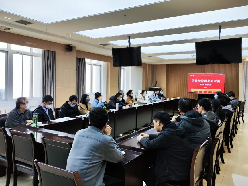 计算机系党支部与学生干部和就业学生召开座谈会。主要从教学管理、教风学风、课程教学、专业实践等方面进行意见征集,并对学生课程学习和就业问题进行指导。会议由计算机系党支部书记王超学主持。