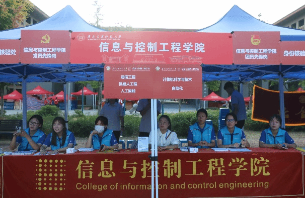 迎新工作人员早早地便布置好了活动现场,整装待发迎接他们的“新伙伴”。信息核验、领取一卡通、分发住宿卡,一切工作井然有序、有条不紊,他们耐心细致地为新生们办理手续,解答各种疑问,只为告诉你,“信控欢迎你!”。
