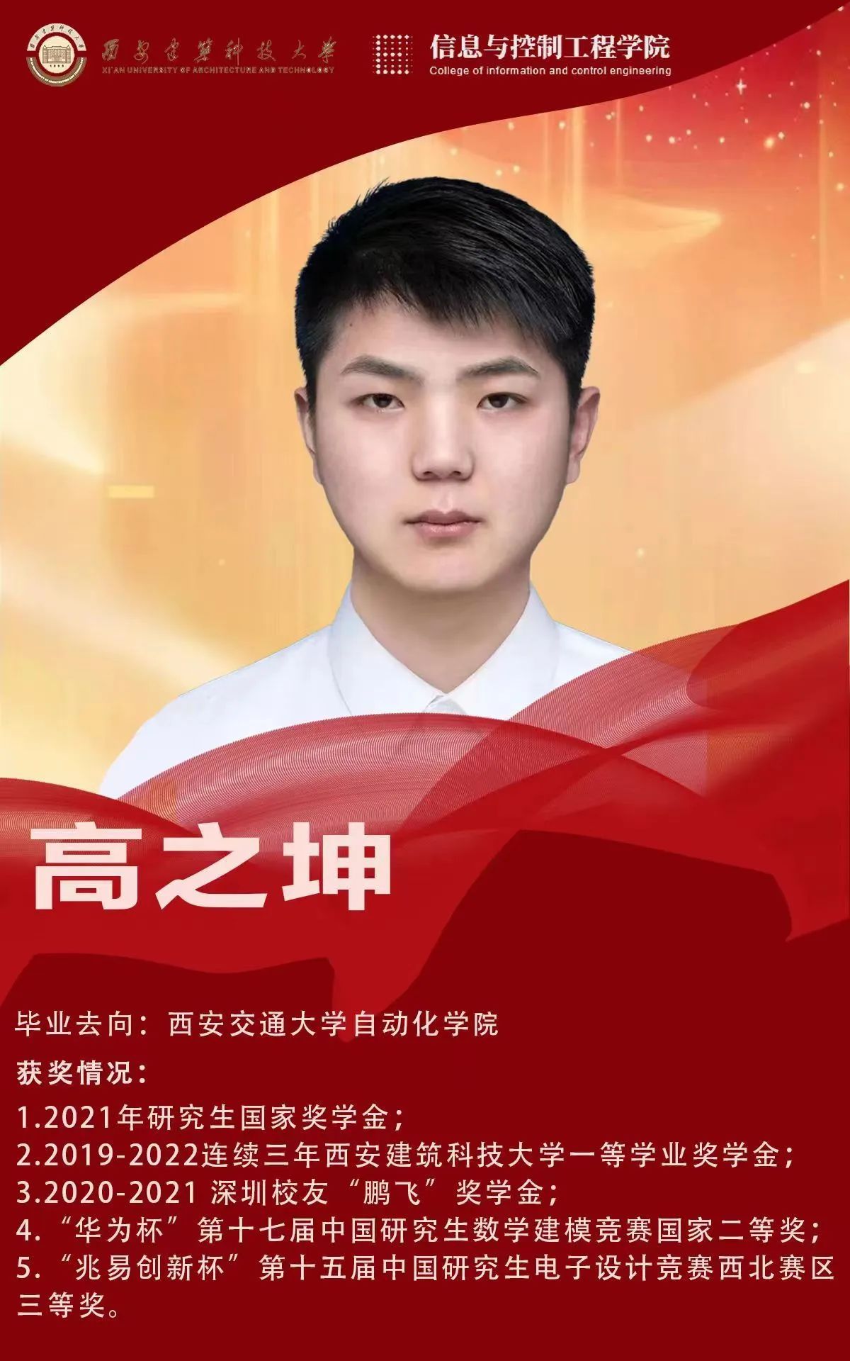 毕业去向:2022年以“申请考核制”控制科学与工程专业排名第一的成绩被西安交通大学自动化学院录取为博士研究生。