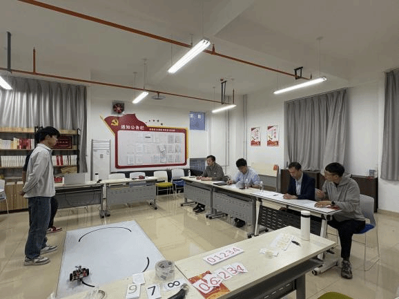 本次竞赛分为作品制作(4月20日-4月26日)、作品测评(4月27日)两个阶段,竞赛题目旨在考察参赛学生的专业知识、创新思维和实践应用能力。本次校赛各参赛队挑战自我,追求卓越,竞赛过程中,选手们完成从电路设计、硬件搭建、软件编程、功能测试及系统调试到最终报告撰写的全过程,全方位考验学生的工程思维与团队协作能力。测评过程中,各参赛团队严格遵循工程开发流程,开展调试流程,向评委介绍了自己的解题思路。评审专家根据赛题要求及评分标准,对各团队提交的作品进行了全面而细致的评审,不仅从技术实现、创新点、实用性等多个维度进行打分,还针对每个作品的解题思路、设备调试、日常练习、备战省赛等多方面提出宝贵意见。