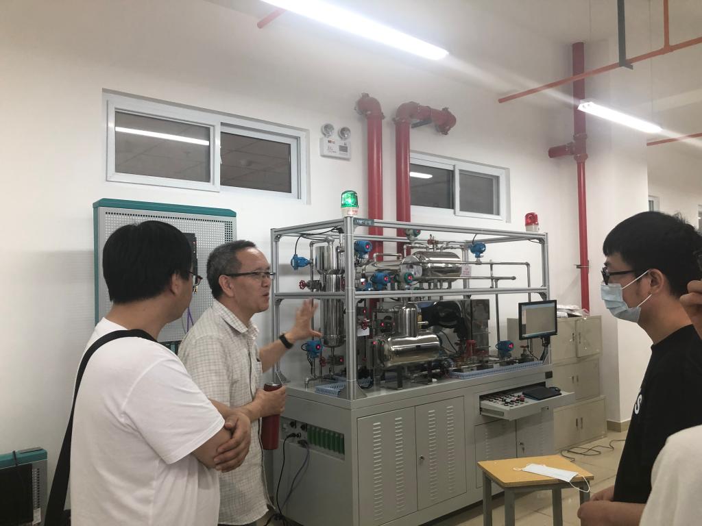 理论授课结束后,王再英教授带领大家前往过程控制实验室,针对比赛过程中使用到的仪器设备,进行现场讲解。