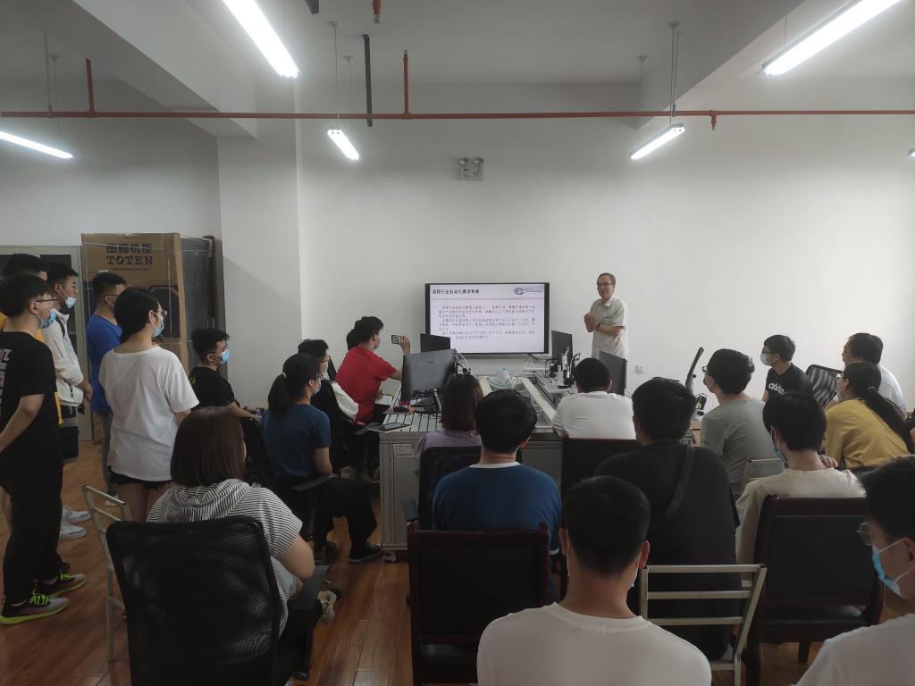 本次培训分为理论授课环节和现场指导环节。在理论授课环节,王再英教授首先带领大家一块观看了“西门子杯”竞赛的宣传视频,介绍了大赛的发展历程,他强调,对于自动化专业来讲,“西门子杯”竞赛从2006年发展至今,已经成为目前国内工业自动化工程领域规模最大的学生类竞赛,参加该比赛会对个人的专业学习、实践动手能力等有着非常明显的提升。