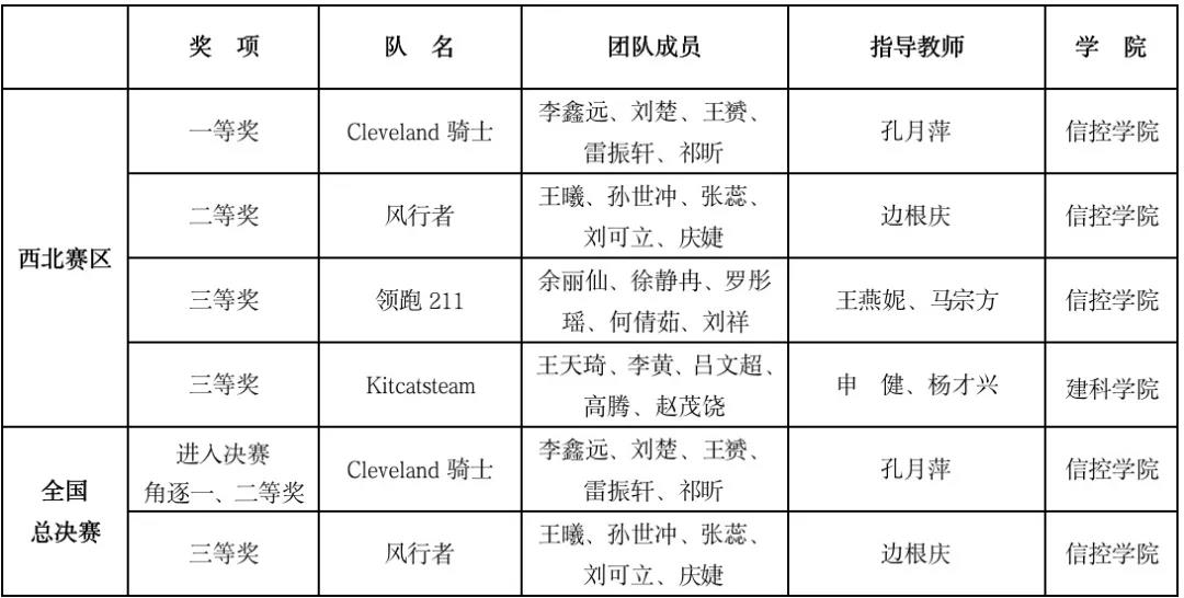 附:西北赛区获奖名单及国赛入围名单