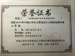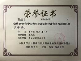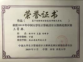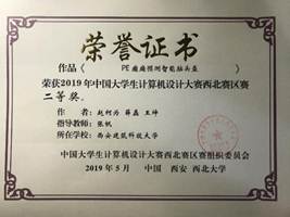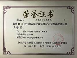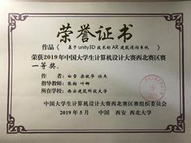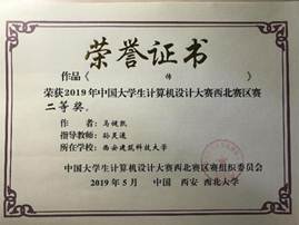 2019年5月12日,2019年中国大学生计算机设计大赛西北地区赛于西北大学太白校区举行,来自西北地区各所高校的2000余名师生参加了本次比赛,参赛作品1000余件,经专家对作品进行初评,遴选出780件入围决赛阶段。我校首次组织学生参赛,共有9件作品进入西北地区赛决赛答辩环节,最终获得一等奖1项、二等奖4项、三等奖4项的优异成绩,其中5件作品入围今年国赛。