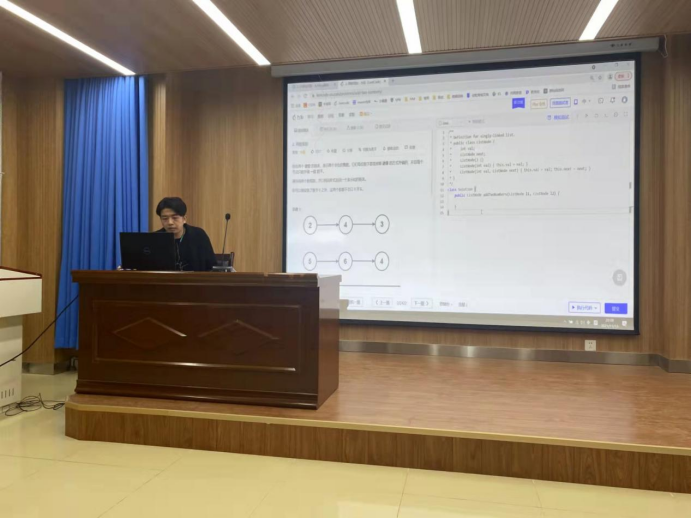 然后,他为同学们现场讲解了部分算法实例,从审题,思题,解题,逐一讲解,带领大家上机实操,让同学们对算法有初步的了解,并且用实践诠释算法的重要性,为同学们学习算法、培养算法思想分享宝贵经验。