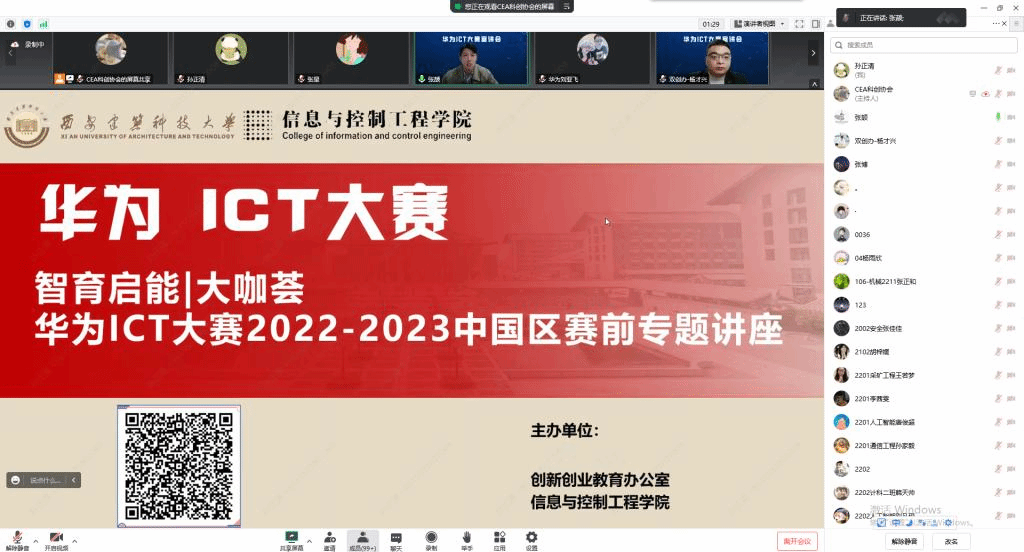 为进一步推动产学研创新发展,培养学生理论与实践相结合的能力,鼓励学生走出书本、走出理论、投身实践。2022年11月25日晚19时,由校创新创业教育办公室和黑料不打烊 联合主办的华为ICT大赛赛前宣讲会在线上举行,华为陕西政企教育行业解决方案总监刘亚飞、业务部程文庆,北京软通教育培训部张星、刘莎莎,北京交通大学全球特等奖获奖团队作为嘉宾受邀到场。校创新创业教育办公室副主任杨才兴,黑料不打烊 党委副书记、副院长张博出席宣讲会,全校近1000名学生线上参与。宣讲会由黑料不打烊 团委书记张颉主持。