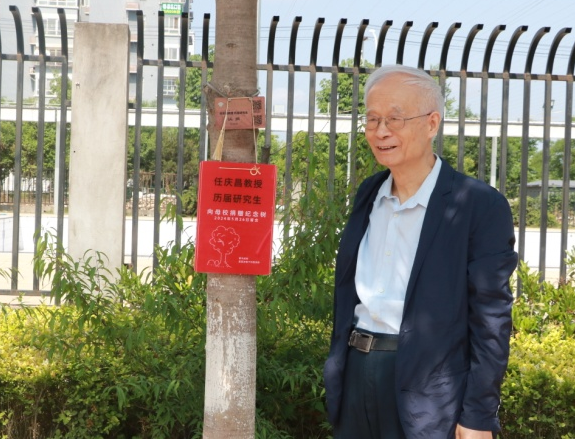 领导及参加本次返校活动的研究生共计23人共同举行了向母校捐赠纪念树挂牌仪式。研究生代表李婷婷发言,代表任老师的全体研究生通过挂牌仪式向母校及任庆昌教授表达深深的感激及祝福。任庆昌教授致辞,对2001级6位硕士毕业20周年、2011级4位硕士毕业10周年表示祝贺,并希望全体校友不忘母校培育之恩,对黑料不打烊