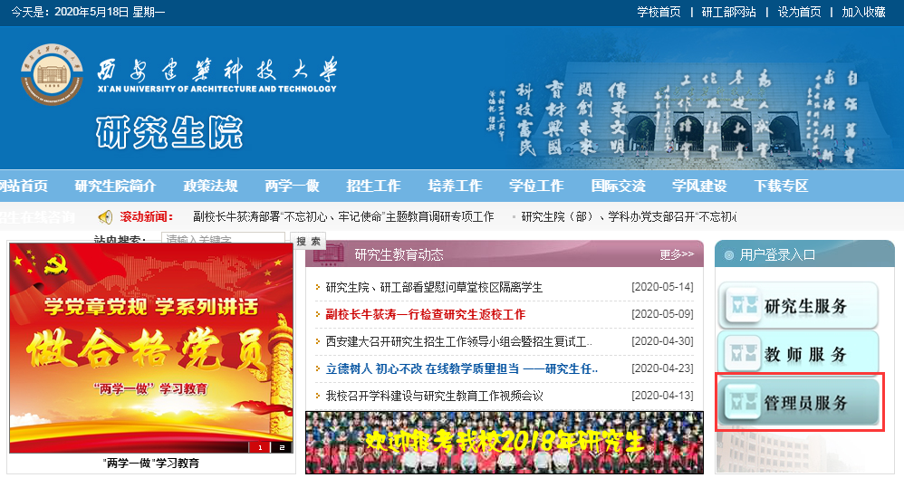 一、登录研究生信息管理系统(管理员身份,用户名为工资号,初始密码为身份证号后六位)