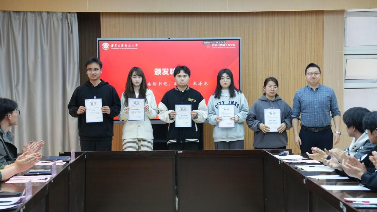 米泽龙为协会成员代表颁发聘书,他表示,职业发展协会是学院全员参与就业工作体系的重要举措,也是落实“一站式”学生社区综合管理模式建设关于学生参与要求的具体体现。他对协会成员提出三点希望:一是立足服务职能,聚焦用人单位招聘需求、毕业生求职需求和各年级学生职业规划发展需求,细化工作举措,供给高质量服务;二是强化团队建设,以高度责任心和扎实业务能力投入协会工作,并在实践中塑造就业观念,提升就业技能,为个人职业生涯启航奠定坚实基础;三是加强品牌建设,开展形式多样的就业育人活动,把协会打造成对外交流的闪亮名片。