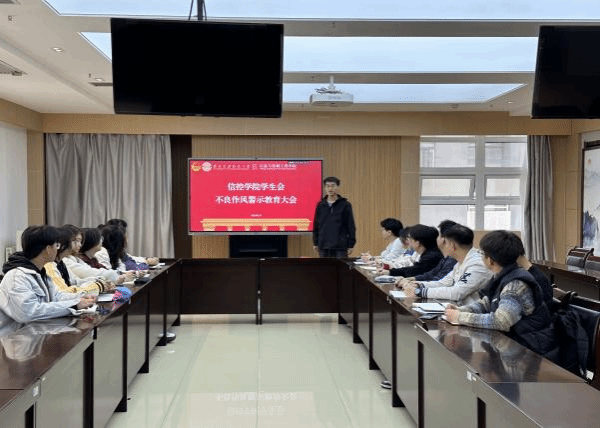 学生会在信控楼504召开不良作风警示教育大会。本次会议由学生会执行主席刘亚飞主持,学生会负责人参会。