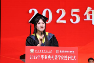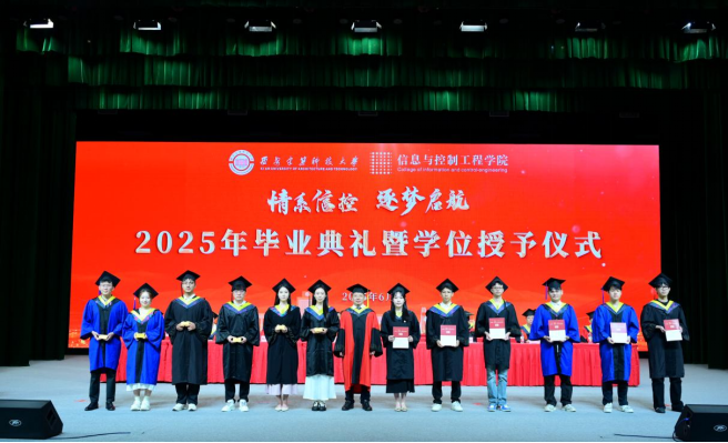 教师代表王可对毕业生表示真挚的祝福,愿毕业生们眼观时代浪潮,心怀赤子初心,躬身实干笃行。以多元价值破单一标准,用专业跨界拓发展之路,突破信息茧房,专注实际问题。以事业为基,顺心意而行,在人生新征程书写美好篇章。毕业班辅导员杜瑶希望同学们牢记学校和学院对毕业生培养和期望,保持持续学习的优良习惯,保持勇往直前的坚定信心,接上“信控人”手中的接力棒,在传承中焕发新的光彩。优秀毕业生代表申瑞和李亚琪回顾了大学的美好时光,表示将携母校教诲勇赴前程,在生活中永葆学习热忱,以所学所长回馈社会。并祝愿母校再创辉煌、全体毕业生鹏程万里。