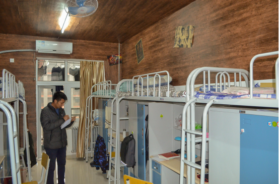 三位辅导员深入学生宿舍,对包含床位、被褥、地面、公共地区、阳台、桌面、门窗、垃圾桶等方面进行检查评估,并结合物业近期安全卫生检查情况,重点排查整改学生宿舍违章电器使用、私拉乱接电线等情况,排除宿舍安全隐患,保障学生安全。检查中,大部分宿舍内干净整洁、床上物品和生活用品摆放整齐、无大功率用电器,宿舍安全管理制度完善。对于小部分仍存在不足的寝室,三位辅导员做下详细记录,并给出了具体的整改要求。