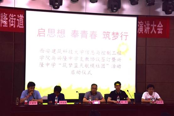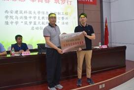“星火”志愿服务队学生干部代表共赴兴隆中学,与兴隆中学校长惠志成、副校长许永琦、教导主任王建峰一同参加仪式。