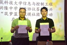 最后,在一片掌声中,双方代表共同签订支教协议并为实践基地揭牌。