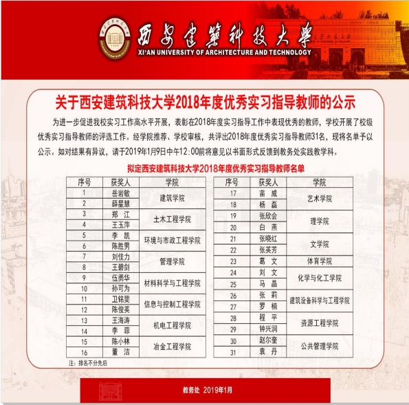 关于黑料不打烊 2018年度优秀实习指导教师的公示