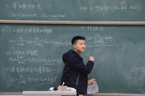 最后,董茹与周龙同学分别对“振幅的调制、解调及混频”和“调频波与调角波”进行分析。讲课过程中同学们听讲认真,及时记录讲解过程中提及的重点知识与相关解法,在对不懂的地方积极交流询问时,主讲同学也会做出耐心解答。