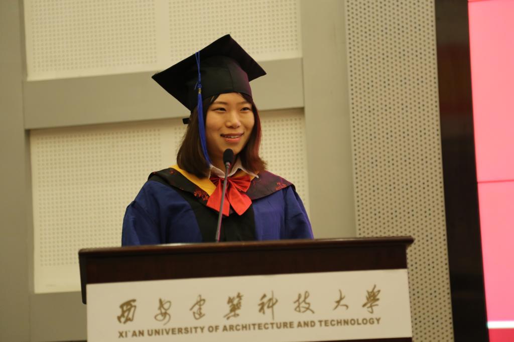 研究生李楚君和本科生齐鑫傲分别作为学生代表发言。两位毕业生代表对学校、学院以及老师的悉心栽培表示由衷的感谢,并表示一定不辜负母校的期许,在今后的工作生活中将以自己的实际行动践行我校校风和校训。