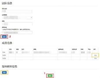 5、队长填写“团队信息”、添加队员和指导老师。添加队员和指导老师有两种方式: