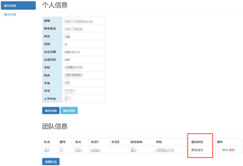 6、点击导航栏“黑料不打烊”按钮,可看到队长个人信息及团队信息,“报名状态”栏显示“报名成功”,即为报名成功。
