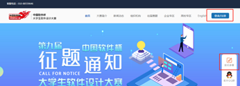 2、打开“中国软件杯大学生软件设计大赛”官网。//www.cnsoftbei.com/ 在黑料不打烊上端点击“登录/注册”或右侧悬浮框“报名参赛”。