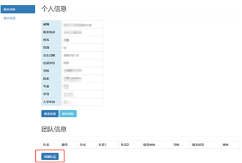 (2)队员可以依照步骤2、3自己注册,之后队长添加队员已注册的电话或邮箱,则自动加入团队。添加队员和指导老师后,点击下方“确认”按钮,再点击上方“提交”按钮。